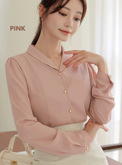 ラウンド カラー ゴールド ボタン ブラウス