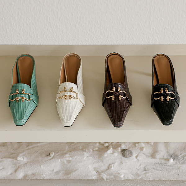 蛇皮紋 ゴールド バックル ローファー スリッパ ヒール
