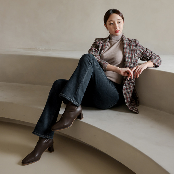 スリム 前 弾力 アンクルブーツ