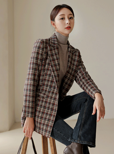 マルチ カラー チェック ダブルボタン ハーフ ジャケット