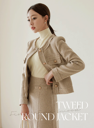 ロマンス マルチ カラー ツイード ラウンド ジャケット