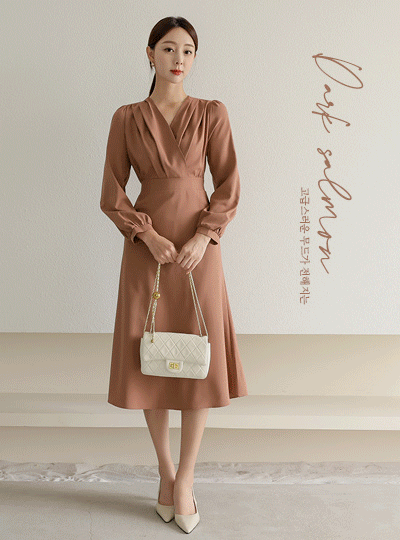 ピンタック シャーリング ラップ フレア 後面バンド ワンピース