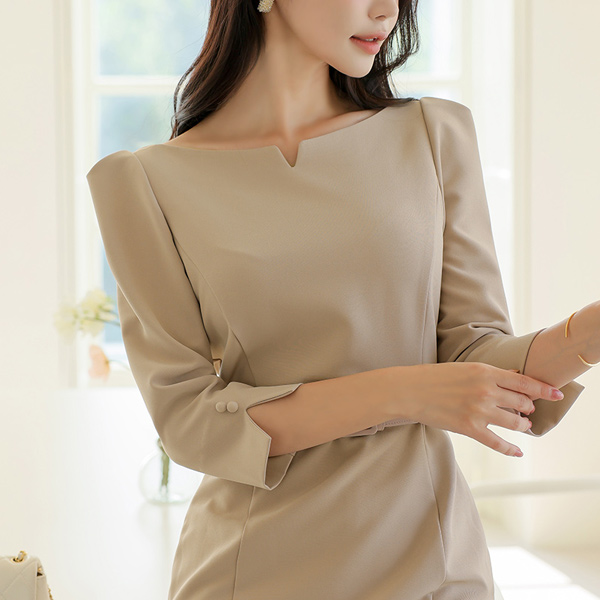 ボートネック V切開 ベルト ワンピース