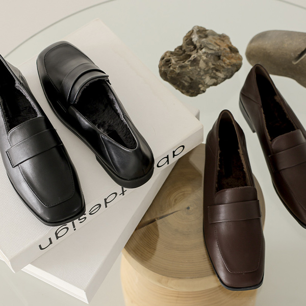 クラシック スクエア ローファー スリッパ(ファー裏地)