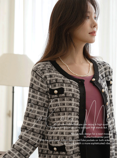 カラー ミックス 真珠 ゴールド ボタン ツイード カーディガン