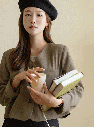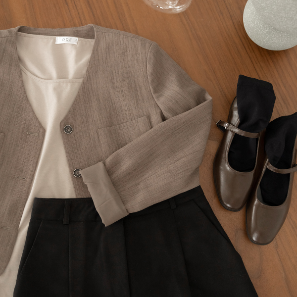 モダン ベーシック ノーカラー ジャケット