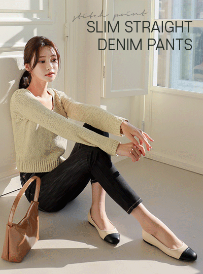 ピュア ステッチ ポイント 生地 スリムストレート デニム パンツ