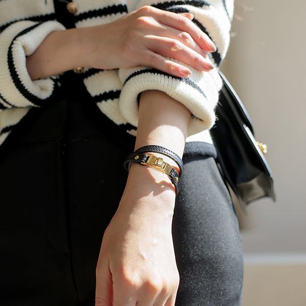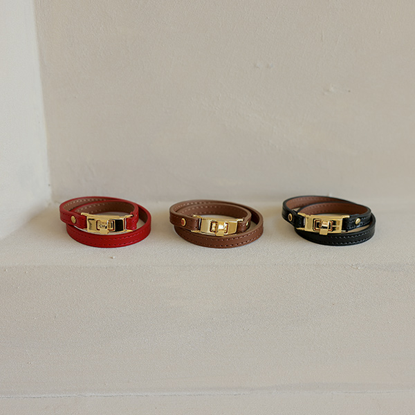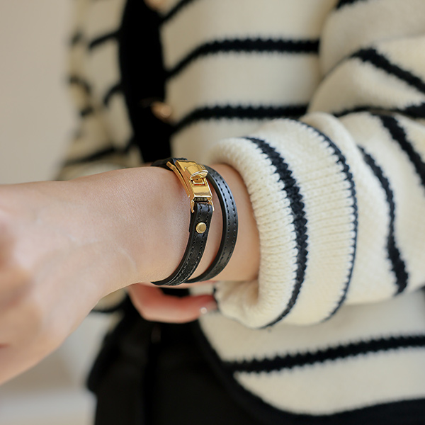 カーフスキン レイヤード バックル ブレスレット