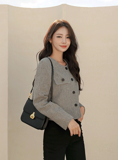 ウール ツイード Black ボタン ラウンド ジャケット