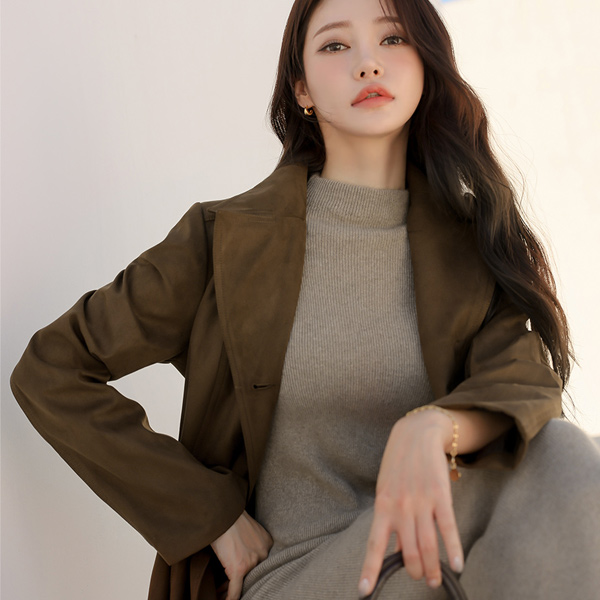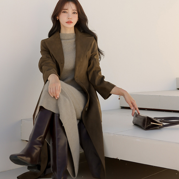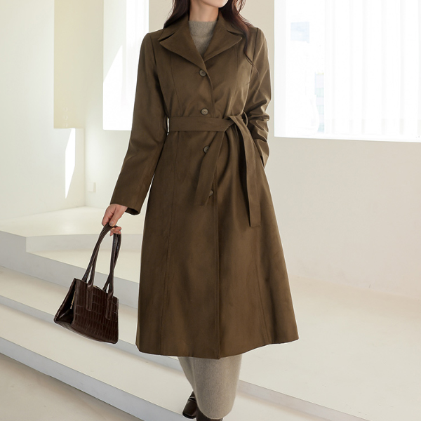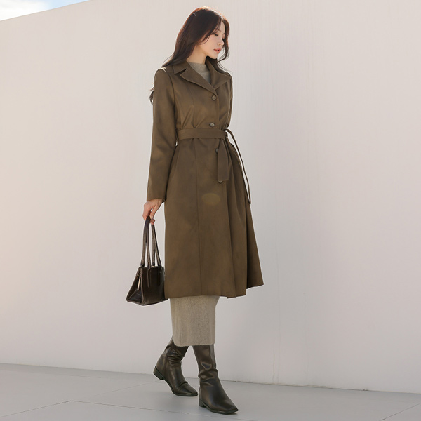 モダン スエード シングル Aライン コート
