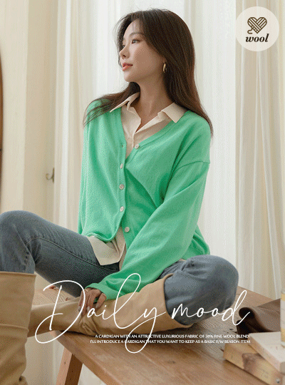 ポイント カラー ウール ブイネック カーディガン