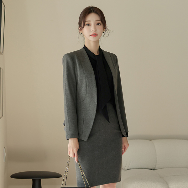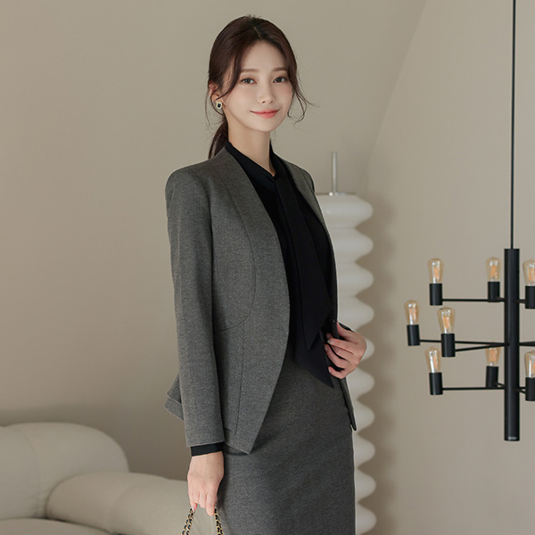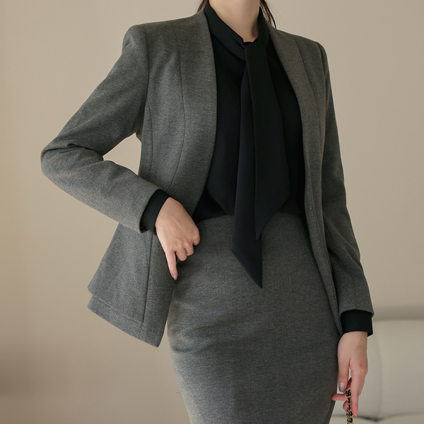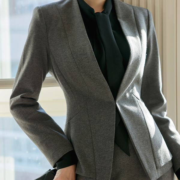 アンナ ノーカラー ペプラム 毛織 ジャケット