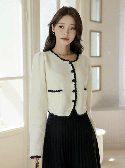 ぽかぽかした ウエーブ 配色 トリミング カーディガン