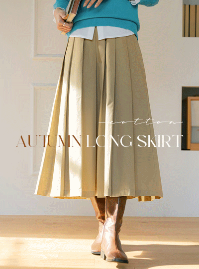 コットン プリーツ 秋 ロング スカート