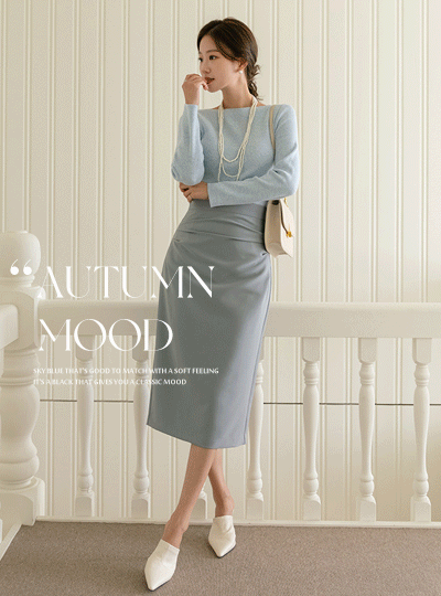 オブジェ シャーリング ライン スリムフィット スカート