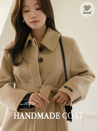 クラシック ムード 隠れた ボタン カラーネック ハンドメード ウール コート