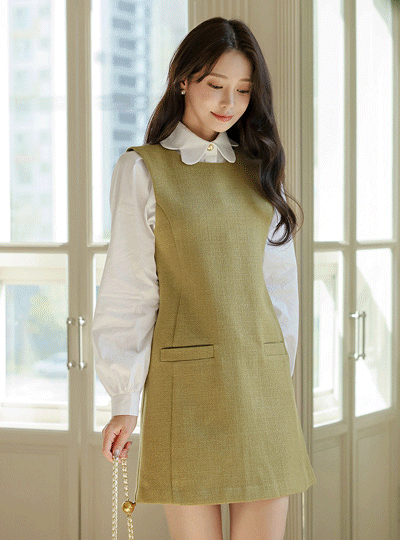 Aライン 毛織 レイヤード ワンピース