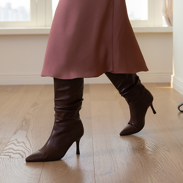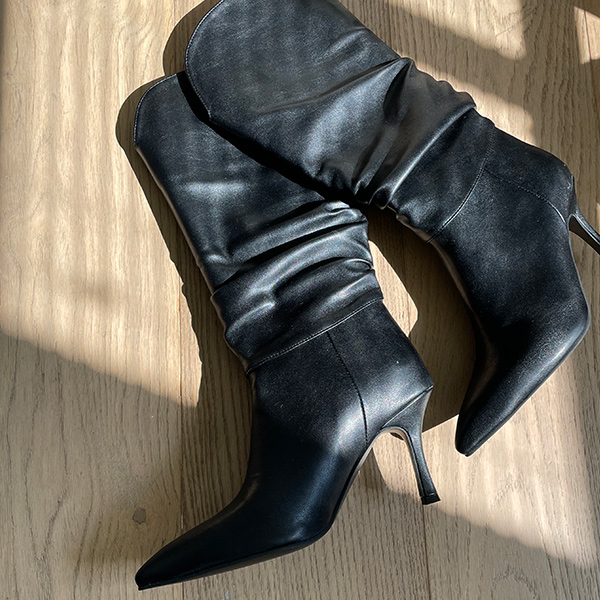 ユニーク シャーリング ロング ブーツヒール