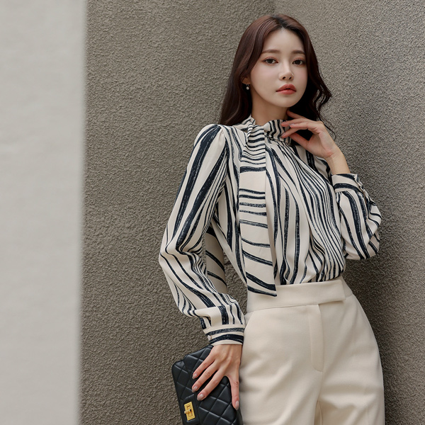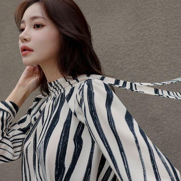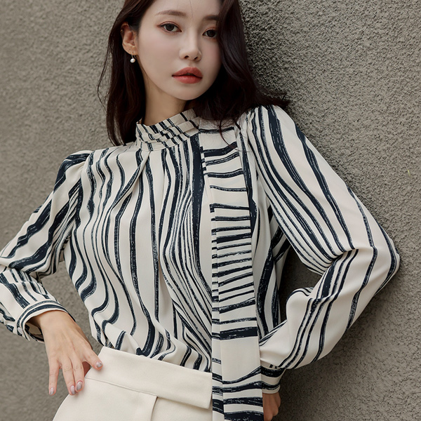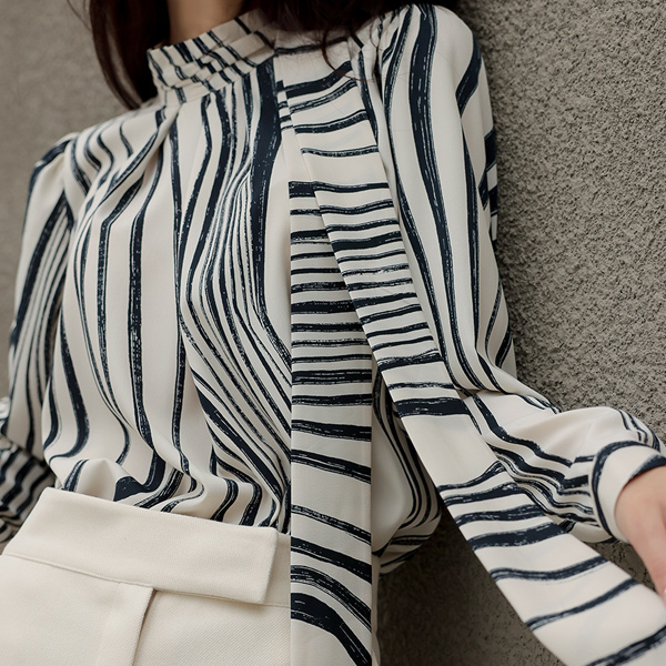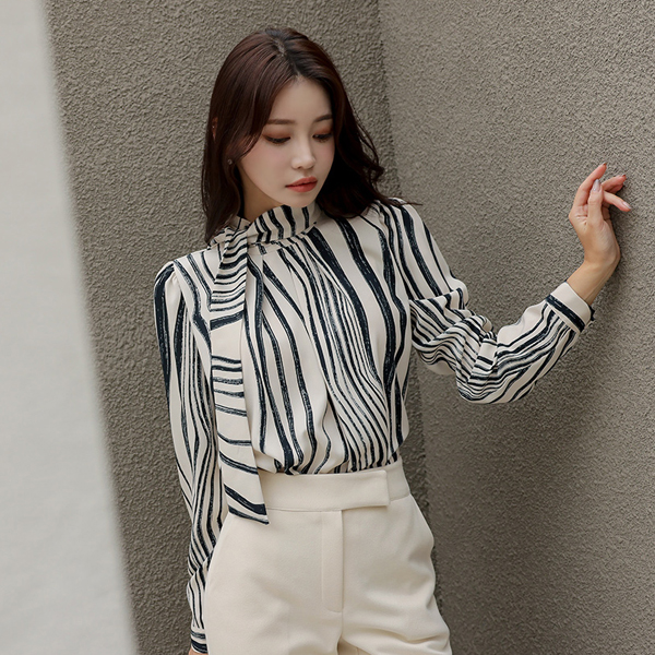 ウエーブ 配色 ハイネック スカーフ ブラウス