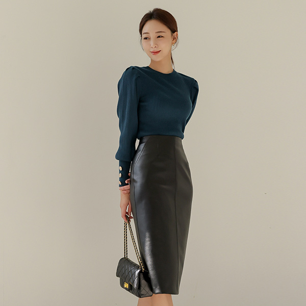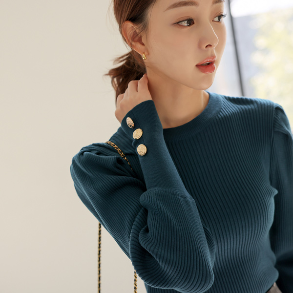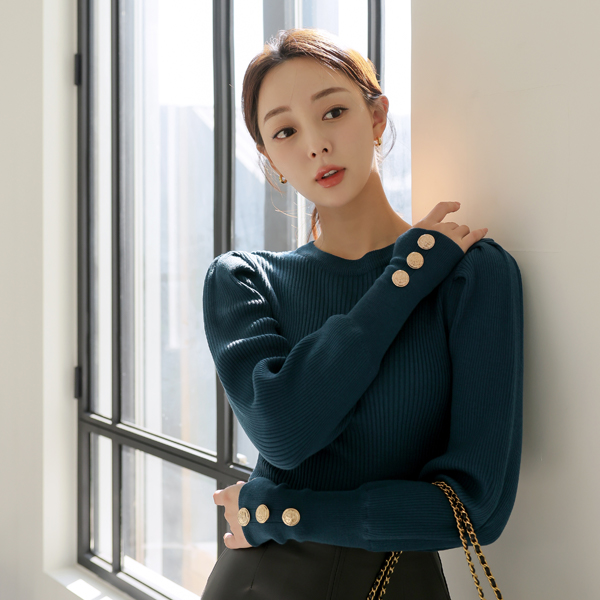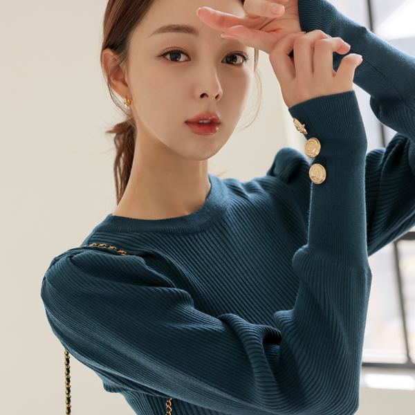 ボールド ゴールドボタン カフス シャーリング パフ袖 ニット Ⅱ