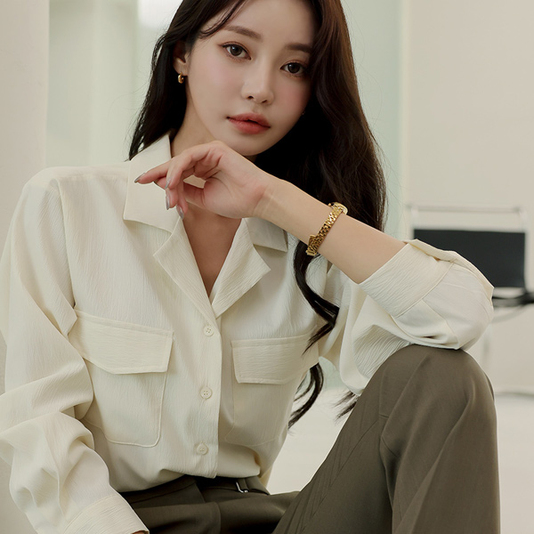 シック ツーポケット リンクル ブラウス