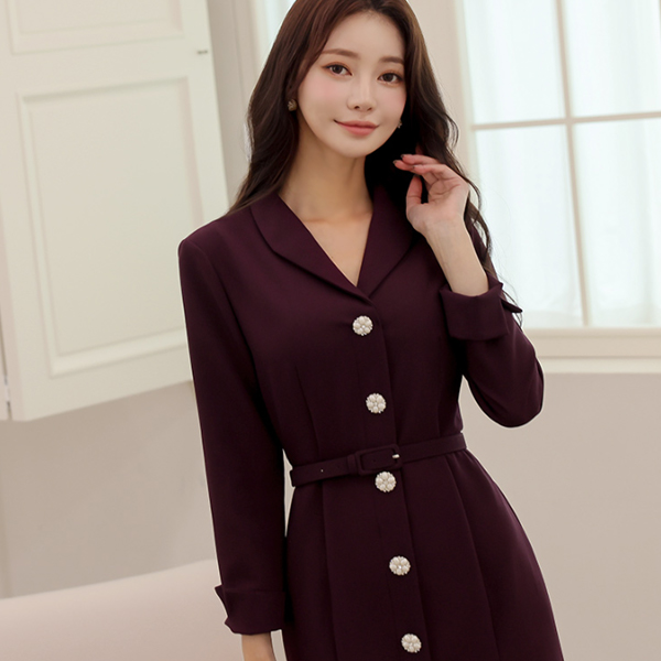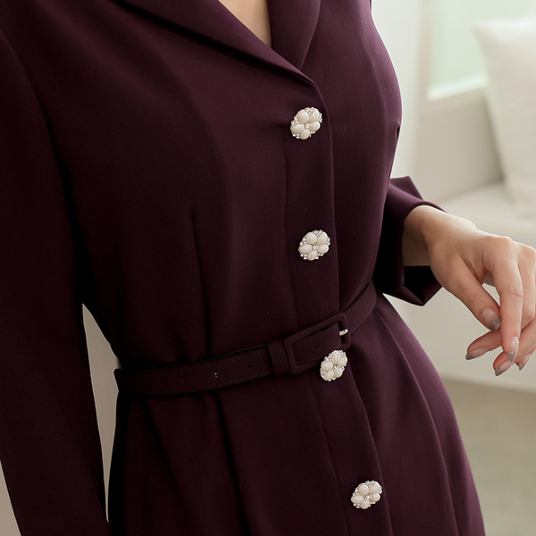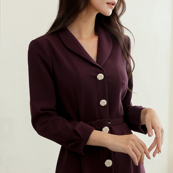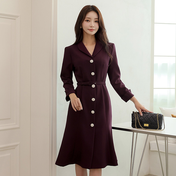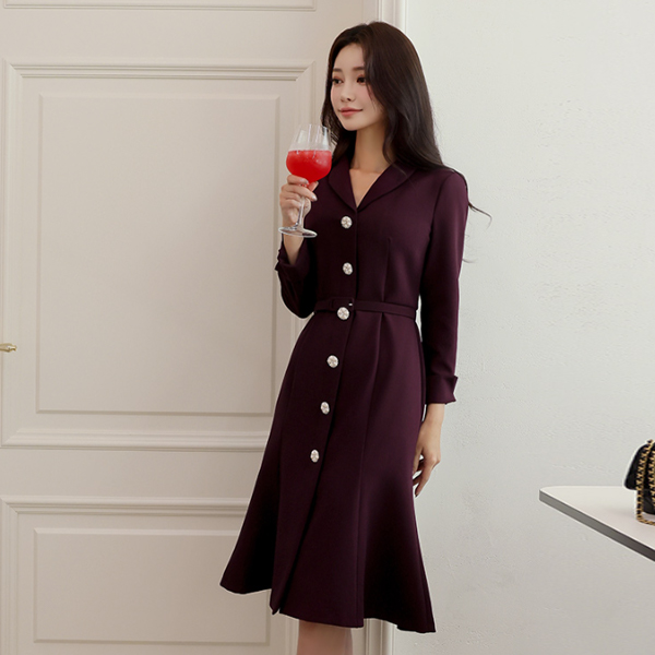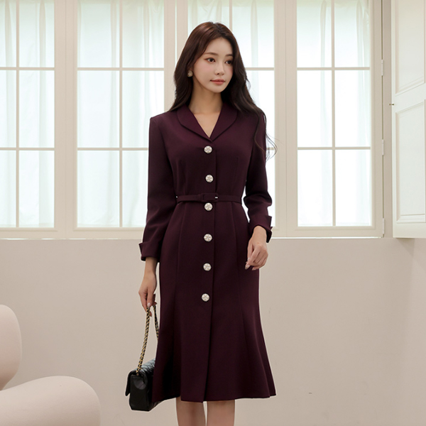 ショールカラー ジュエリーボタン マーメイド ワンピース(fall)