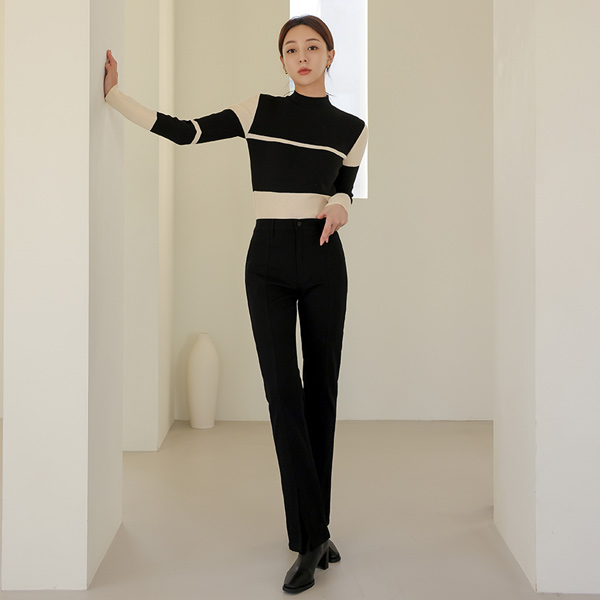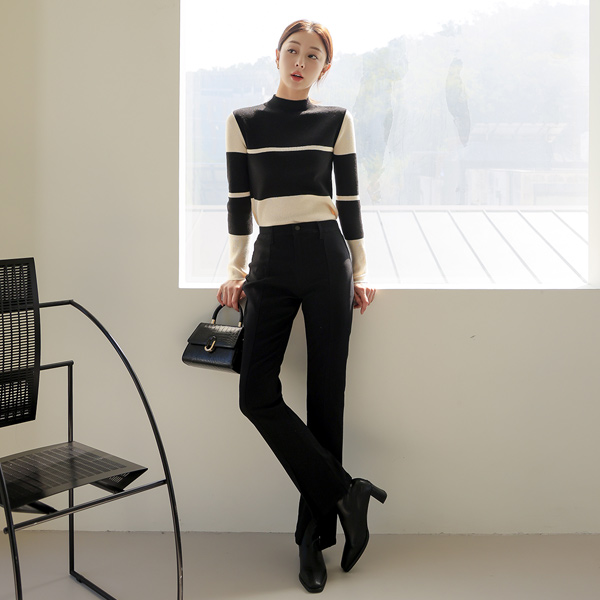 細かく美しい 弾力 切開 ストレート パンツ
