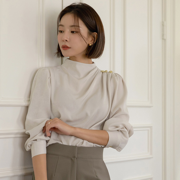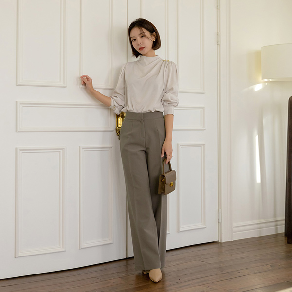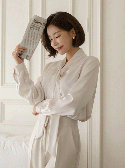 エレガンス グロッシー サテン ピンタック タイ ブラウス