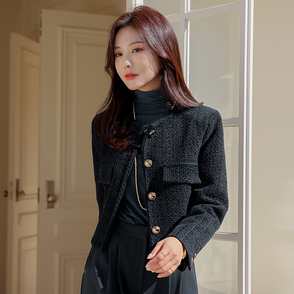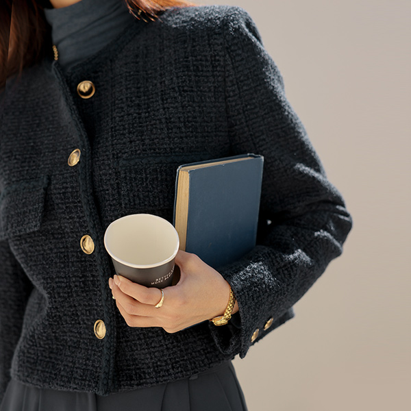 ムード ツイード 分厚い クロップド ジャケット