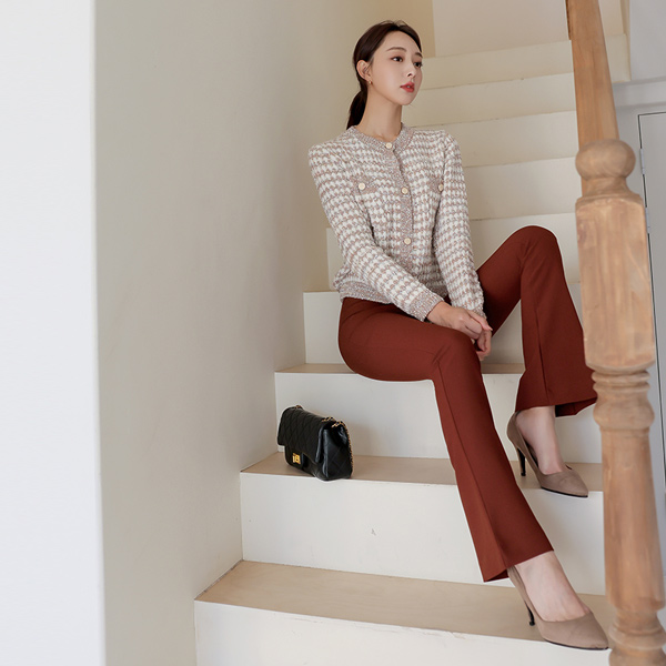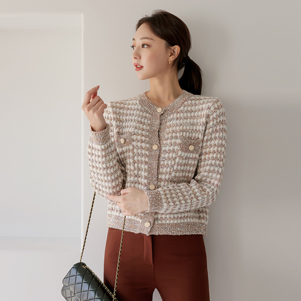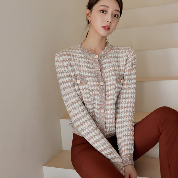 ふわふわ パール ツイード ニット カーディガン
