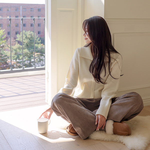 カラー ジップアップ ニット カーディガン