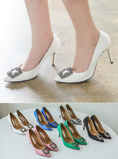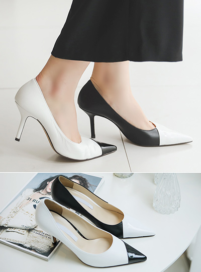 カーフスキン ブラックアンドホワイト コンビ スティレットヒール
