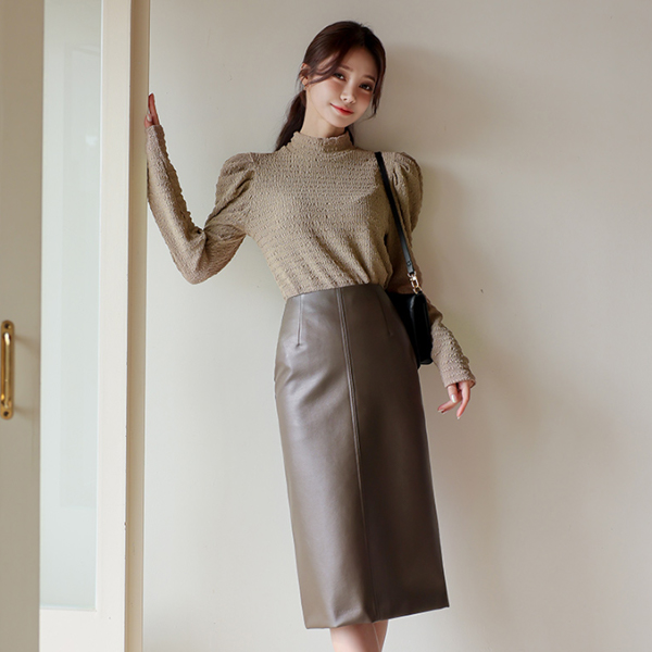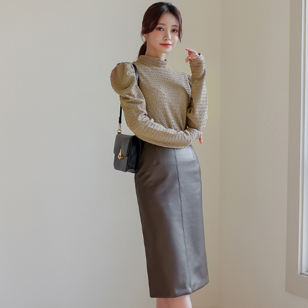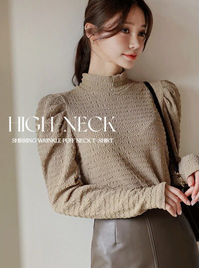 ハイネック シャーリング リンクル 퍼프넥 ティーシャツ