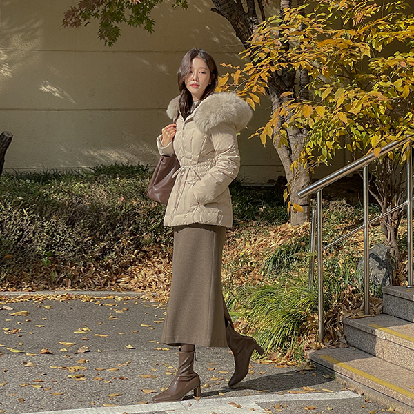 Peach 起毛 弾力 切開 スキニー パンツ(起毛裏地)