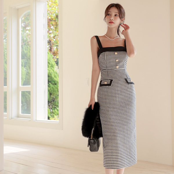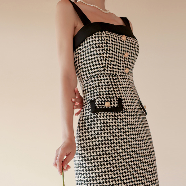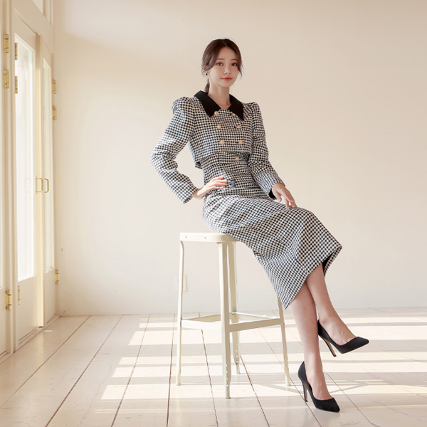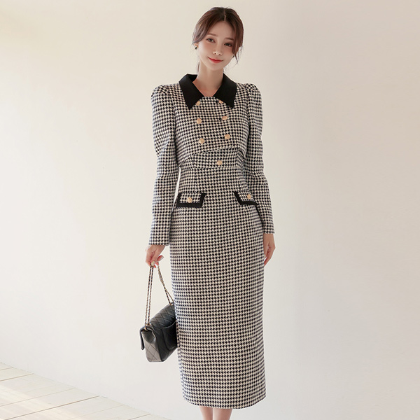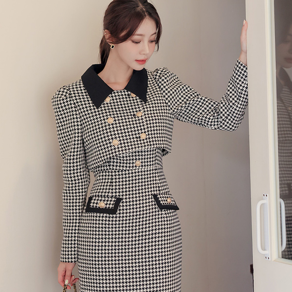 ハウンドトゥース チェック ワンピース&クロップド ジャケット SET