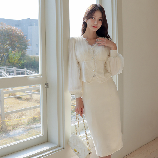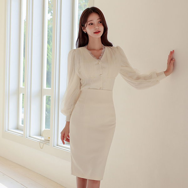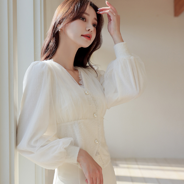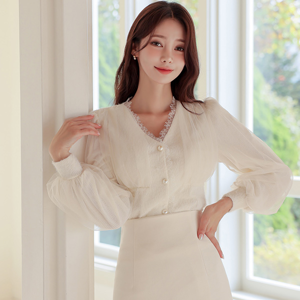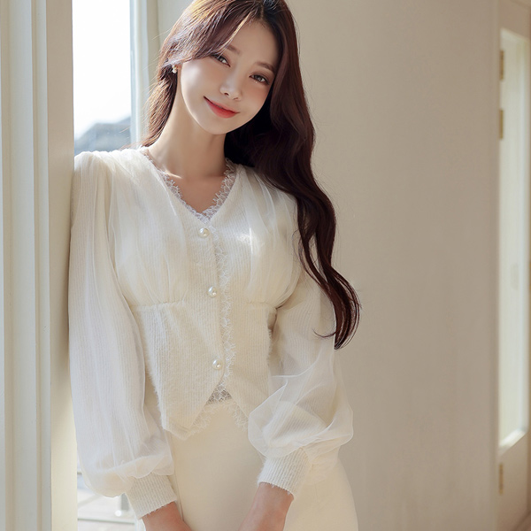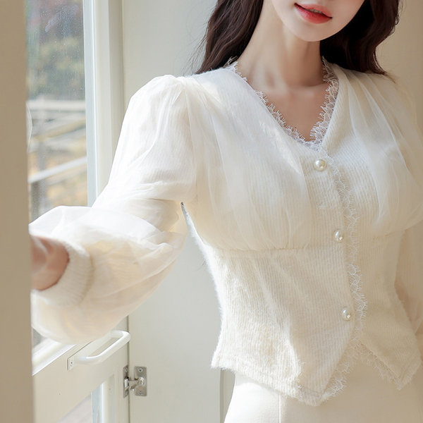 オーガンザ レイス トリミング ニット ブラウス