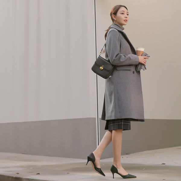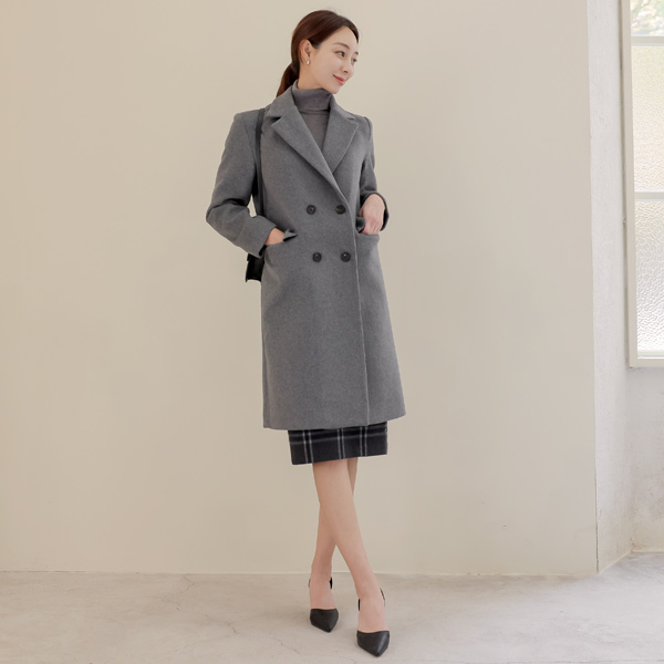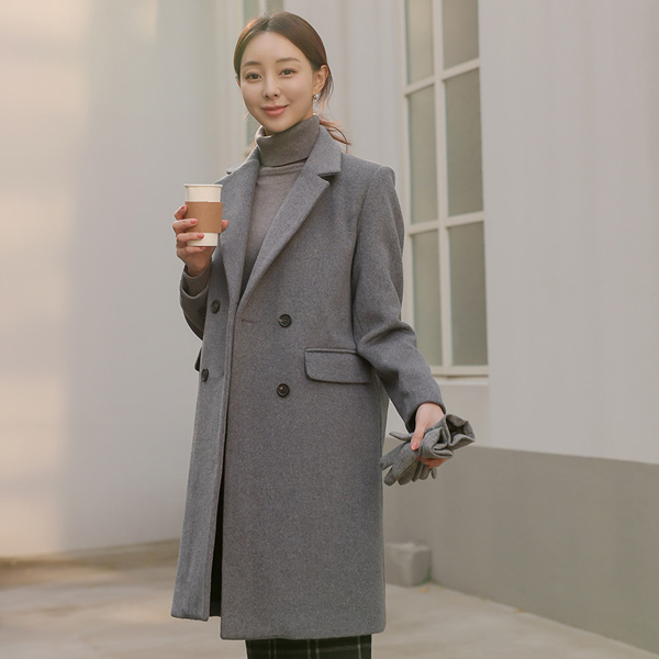 基本フィット ダブル ボタン ウール コート