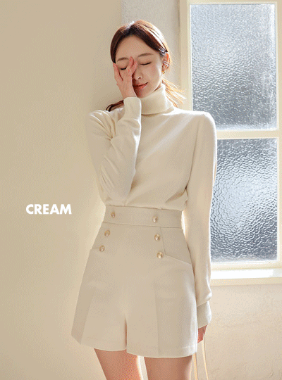 スクエア ポケット ダブルボタン 4分팬츠(winter)