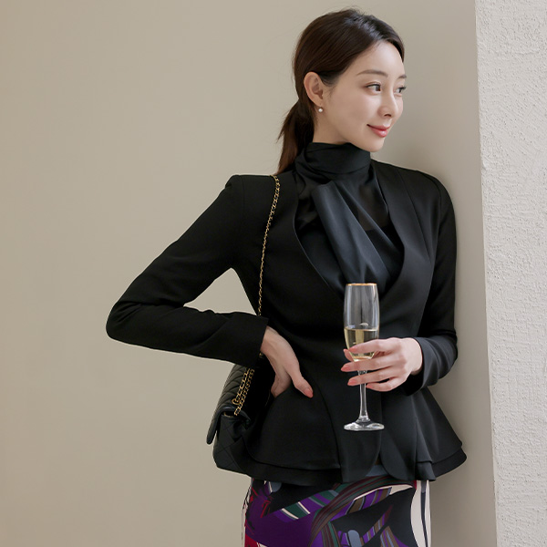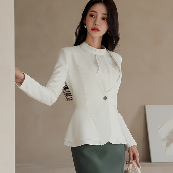 ノーカラー 二重 ペプラム 弾力 ジャケット Ⅱ