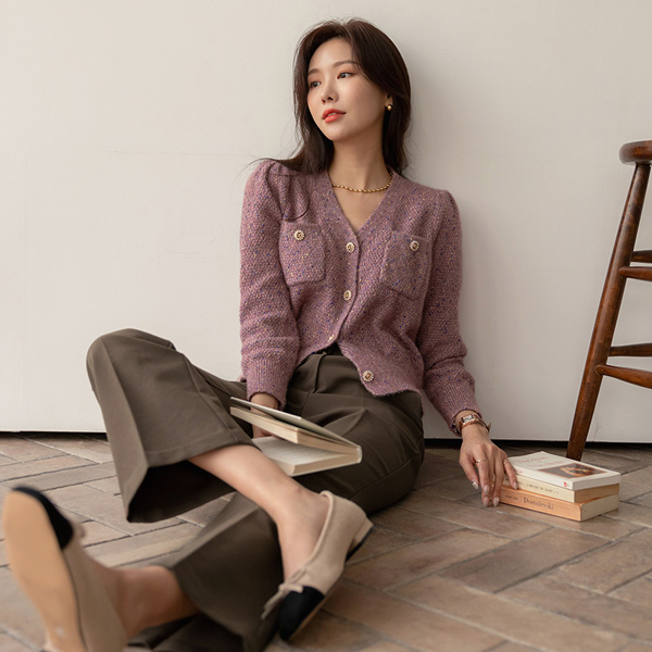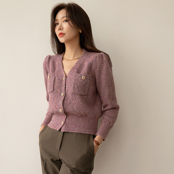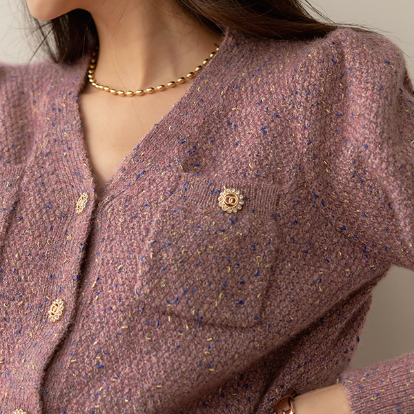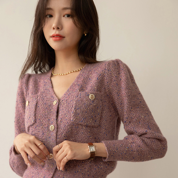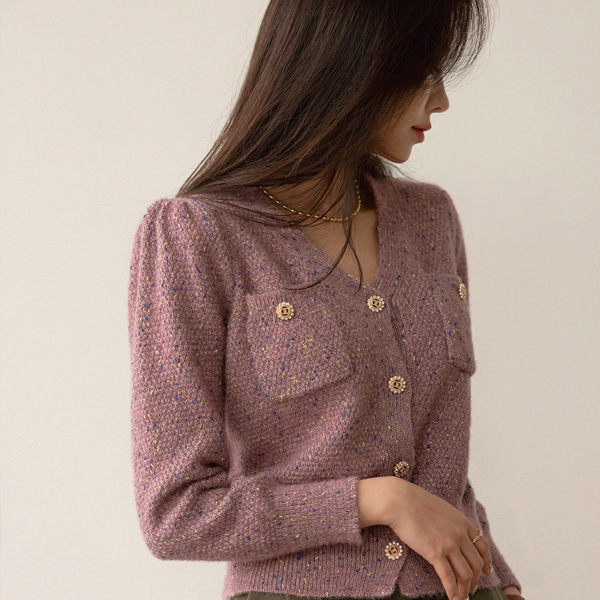 きらめく 宝石 ボタン ショルダー パッド ニット カーディガン