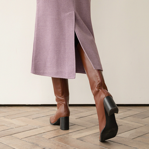シック バックスリット スクエアトー ロングブーツ