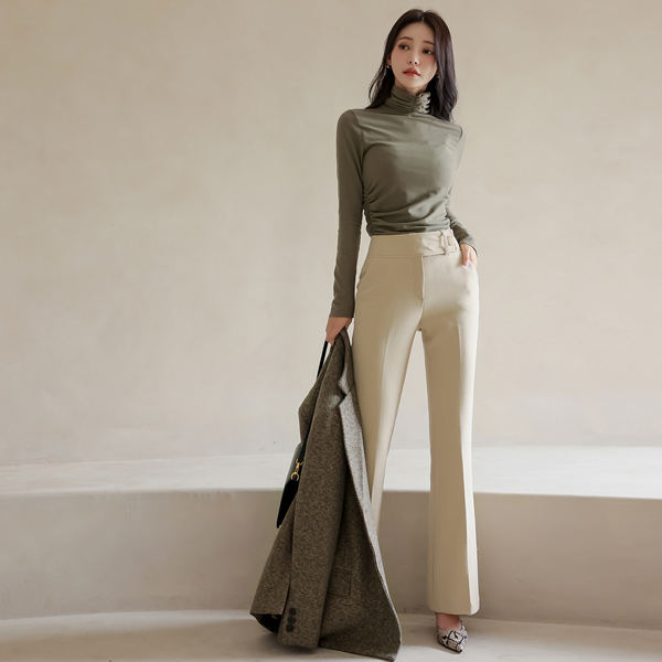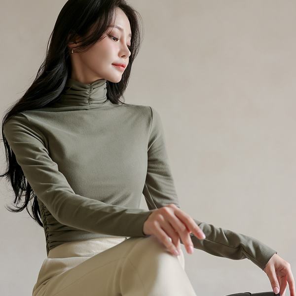 ネック&サイド シャーリング スリム とっくりえり ティーシャツ