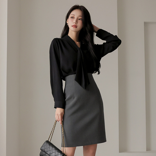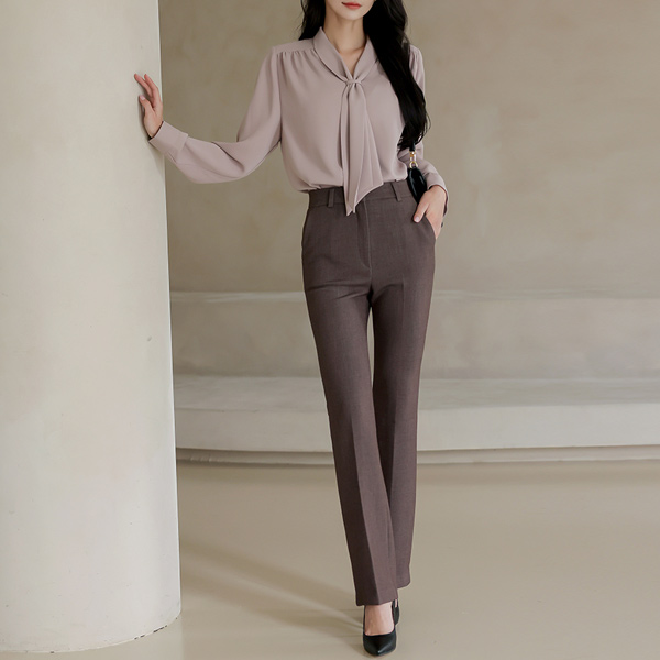 女性らしい ショルダー シャーリング タイ ブラウス(winter)