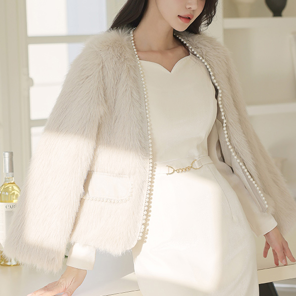 真珠 裏地 エコファー オープン ジャケット (キルティング裏地)