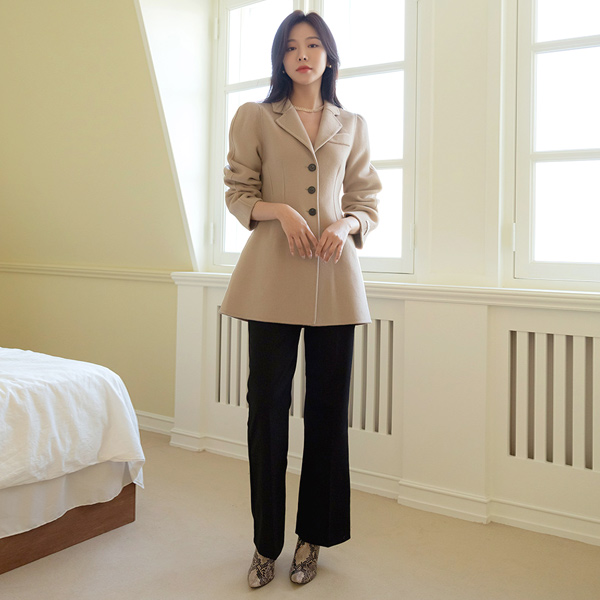スリム ウエスト ライン パフ ハンドメード ウール ジャケット