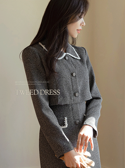 タッセル 配色 ライン モダン ツイード ワンピース