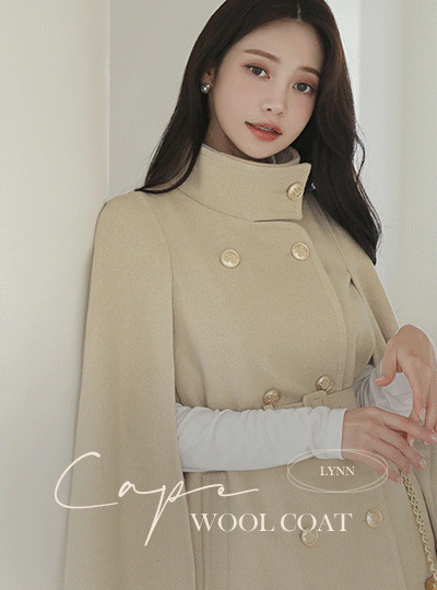 ODE ハイネック ゴールド ボタン ベルティード ケープ ウール コート