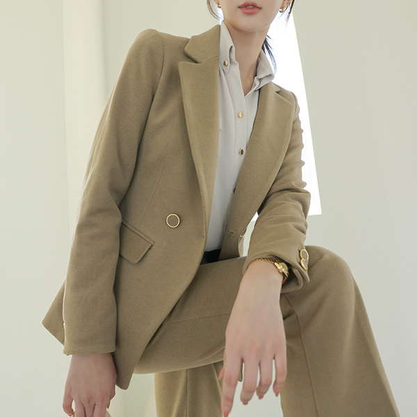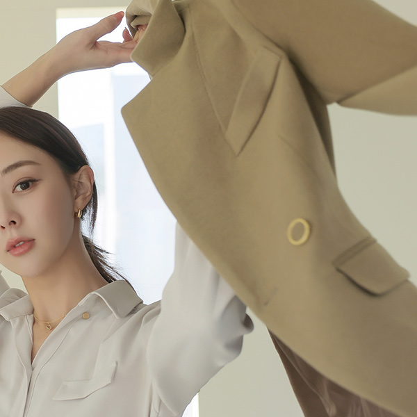 半オープン カラー ゴールド ボタン ショルダー シャーリング ブラウス