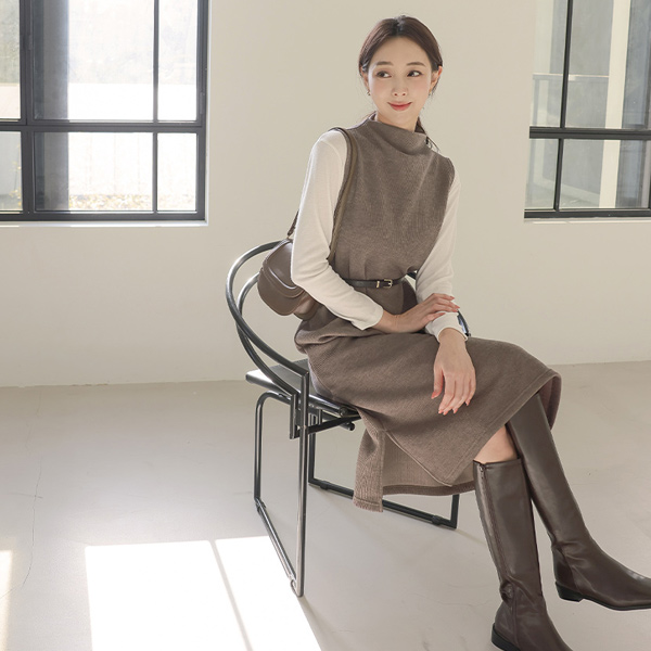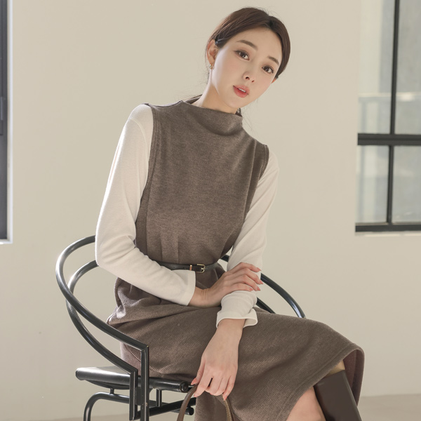 ティーシャツ&ハイネック コール天 ロング ワンピース SET