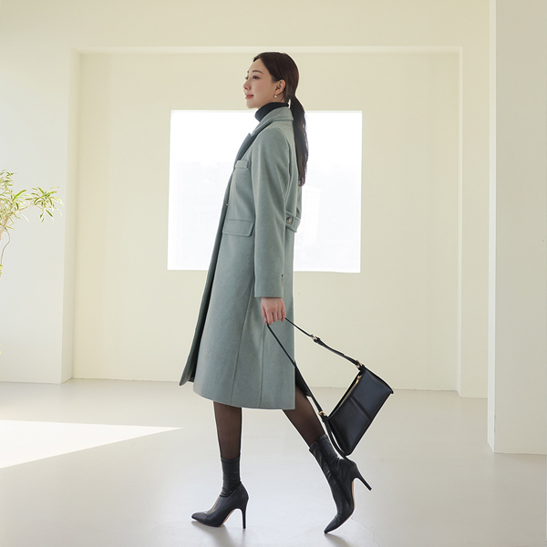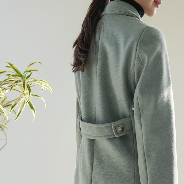 シンプル ストレートフィット バックパック ベルティード ウール コート